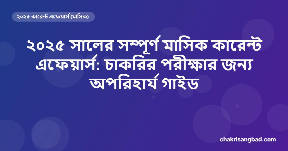 ২০২৫ সালের সম্পূর্ণ মাসিক কারেন্ট এফেয়ার্স: চাকরির পরীক্ষার জন্য অপরিহার্য গাইড স্বাগতম, পরীক্ষার্থী বন্ধুগণ! আপনারা যারা ২০২৬ সালের বিভিন্ন সরকারি চাকরির পরীক্ষার (যেমন WBCS, UPSC, রেল, ব্যাঙ্কিং, SSC ইত্যাদি) প্রস্তুতি…
