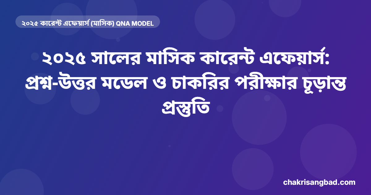 ২০২৫ সালের মাসিক কারেন্ট এফেয়ার্স: প্রশ্ন-উত্তর মডেল ও চাকরির পরীক্ষার চূড়ান্ত প্রস্তুতি ভূমিকা চাকরির পরীক্ষার প্রস্তুতিতে কারেন্ট এফেয়ার্স বা সাম্প্রতিক ঘটনাবলী একটি অত্যন্ত গুরুত্বপূর্ণ অংশ। ২০২৬ সালে দাঁড়িয়ে, যারা সরকারি…