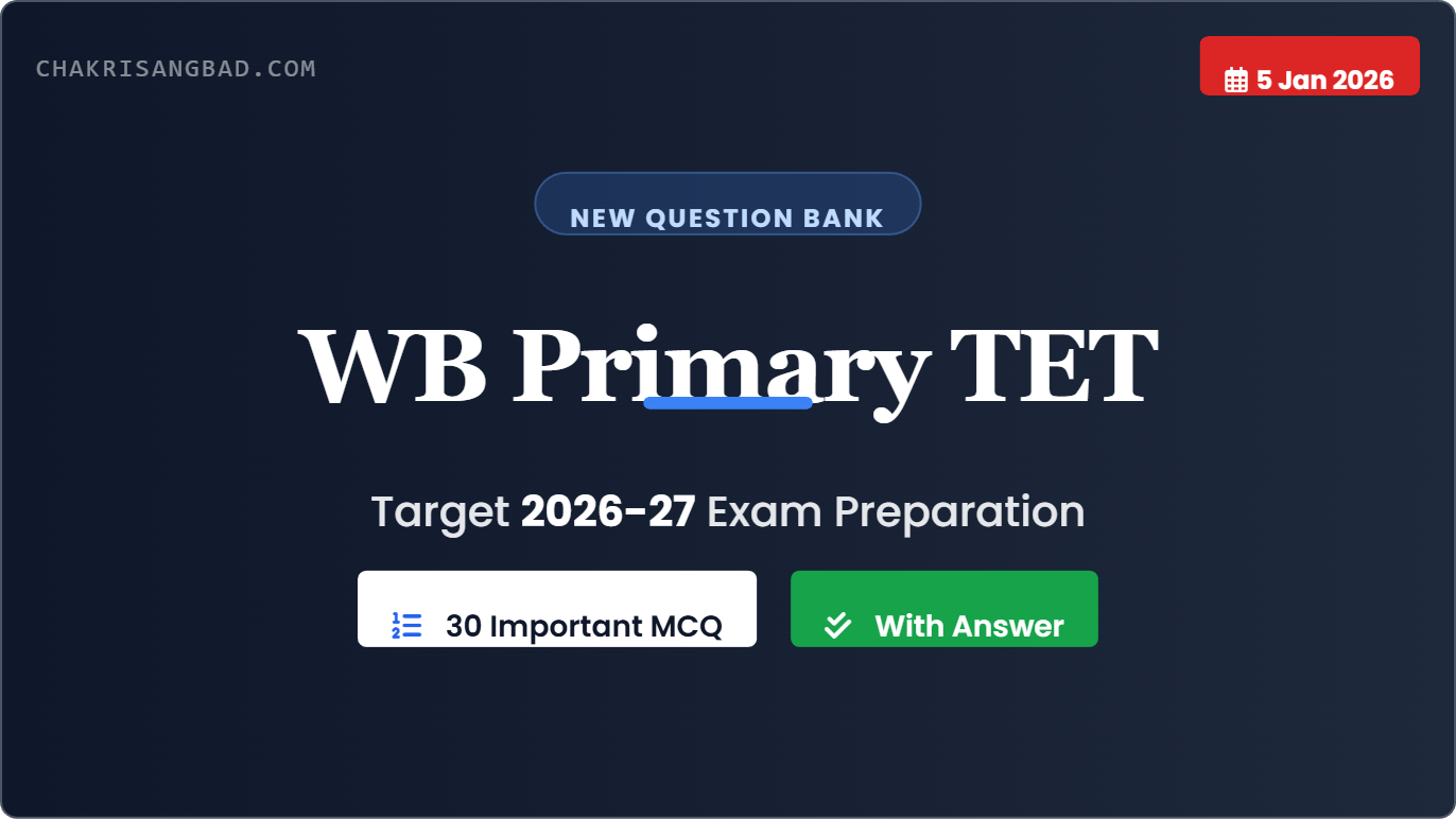 WB TET মক টেস্ট সিরিজ – ০২ (শিশু মনস্তত্ত্ব, ভাষা ও পরিবেশ) প্রিয় পরীক্ষার্থীগণ, আসন্ন পশ্চিমবঙ্গ প্রাথমিক শিক্ষক নিয়োগ (WB TET) পরীক্ষার প্রস্তুতিকে আরও মজবুত করতে চাকরী সংবাদ (Chakri Sangbad)…